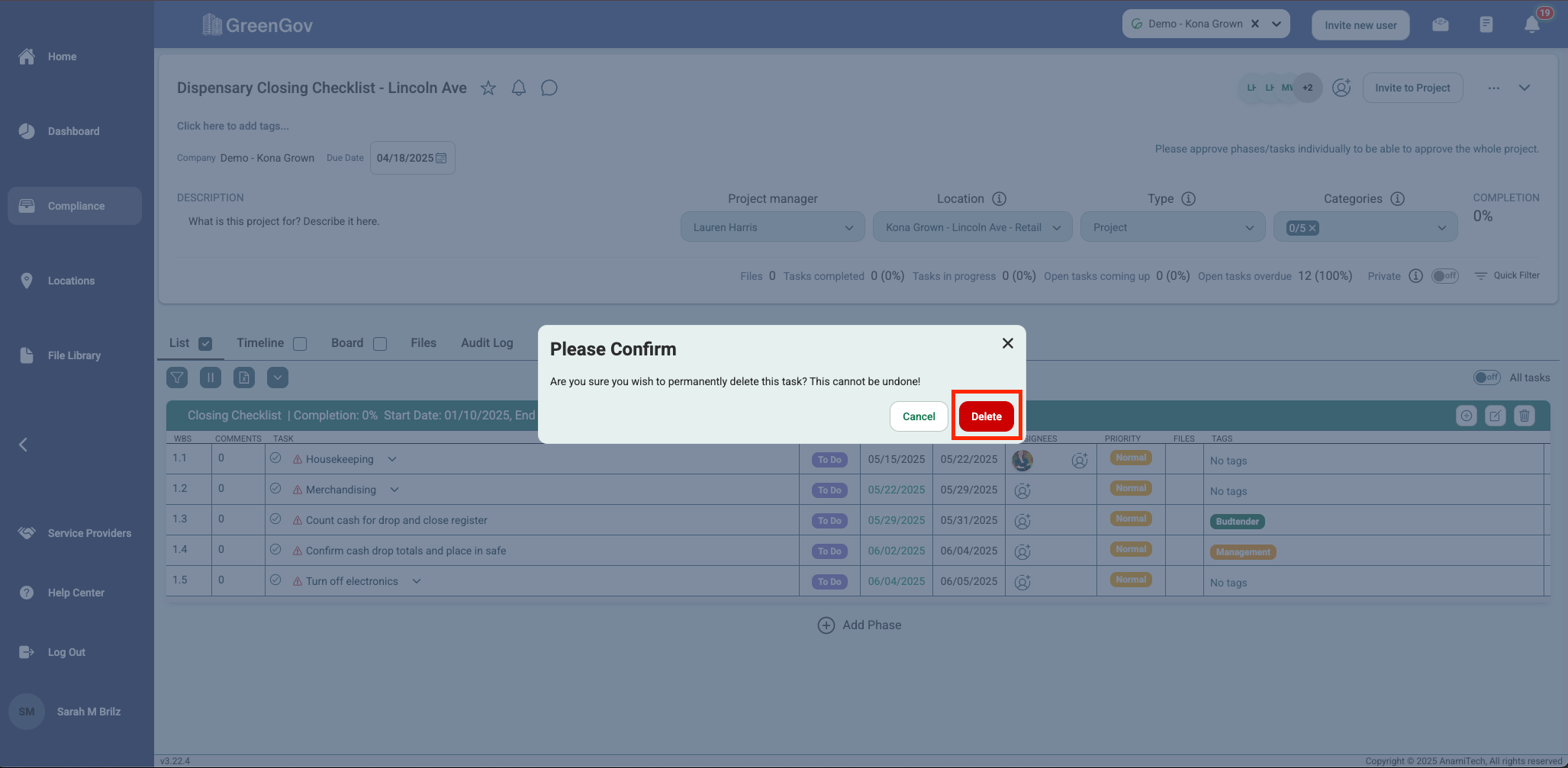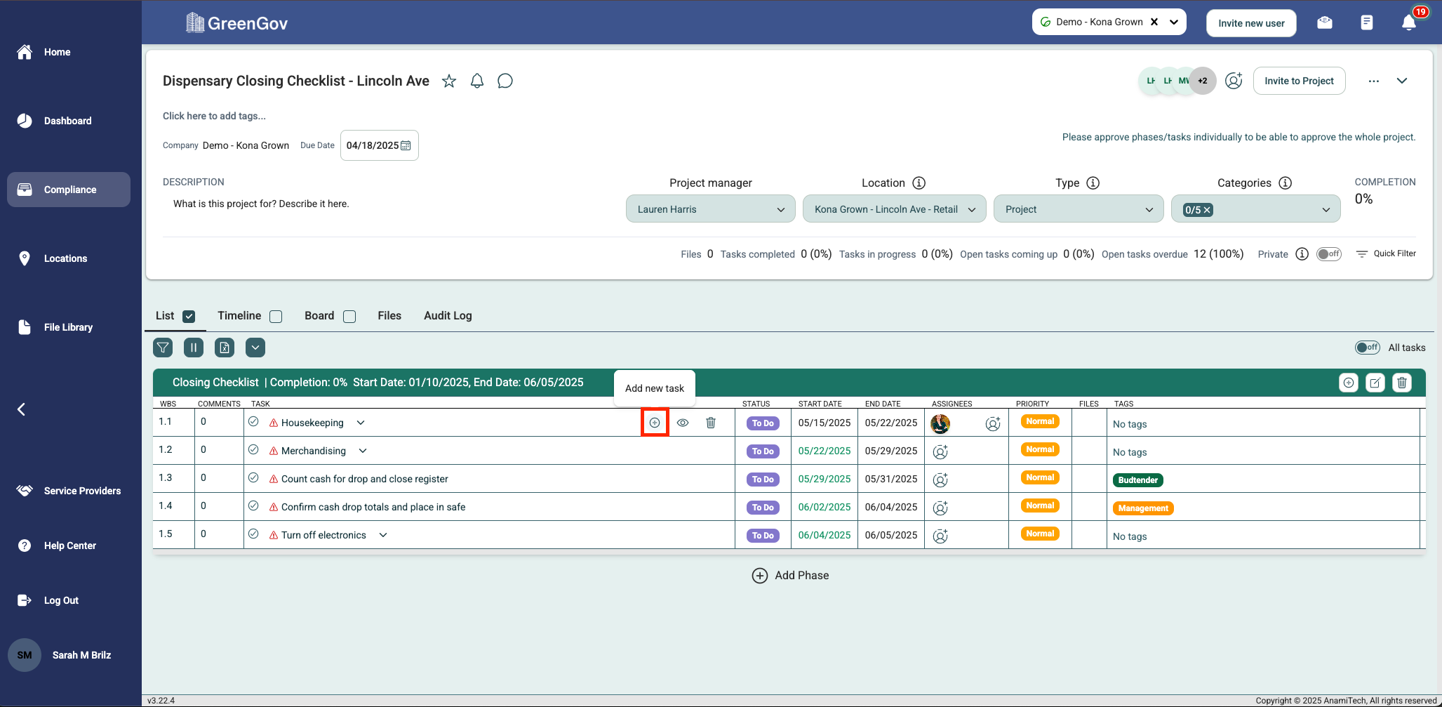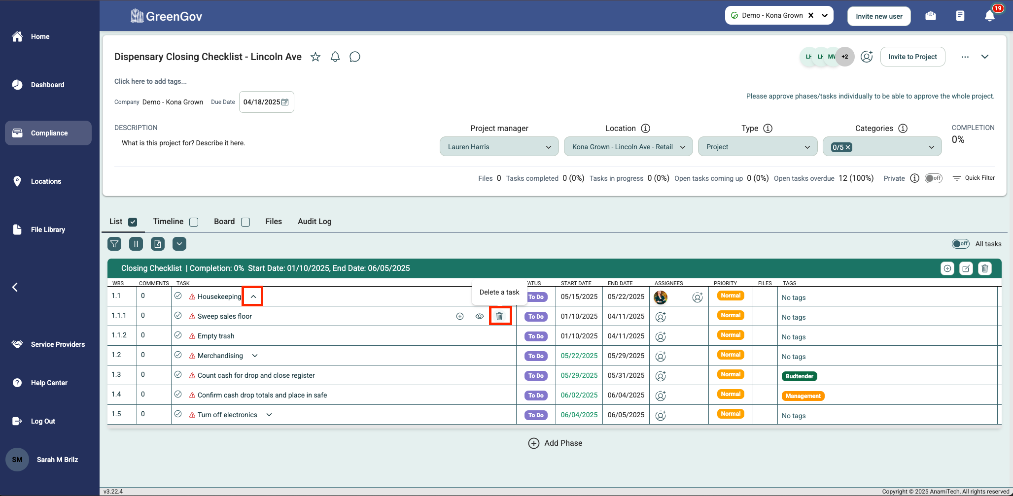 That's it! You're now equipped to add, edit, and delete phases, tasks, and sub-tasks in GreenGov. If you have any questions or need further assistance, please don't hesitate to reach out to our support team. Happy project management!