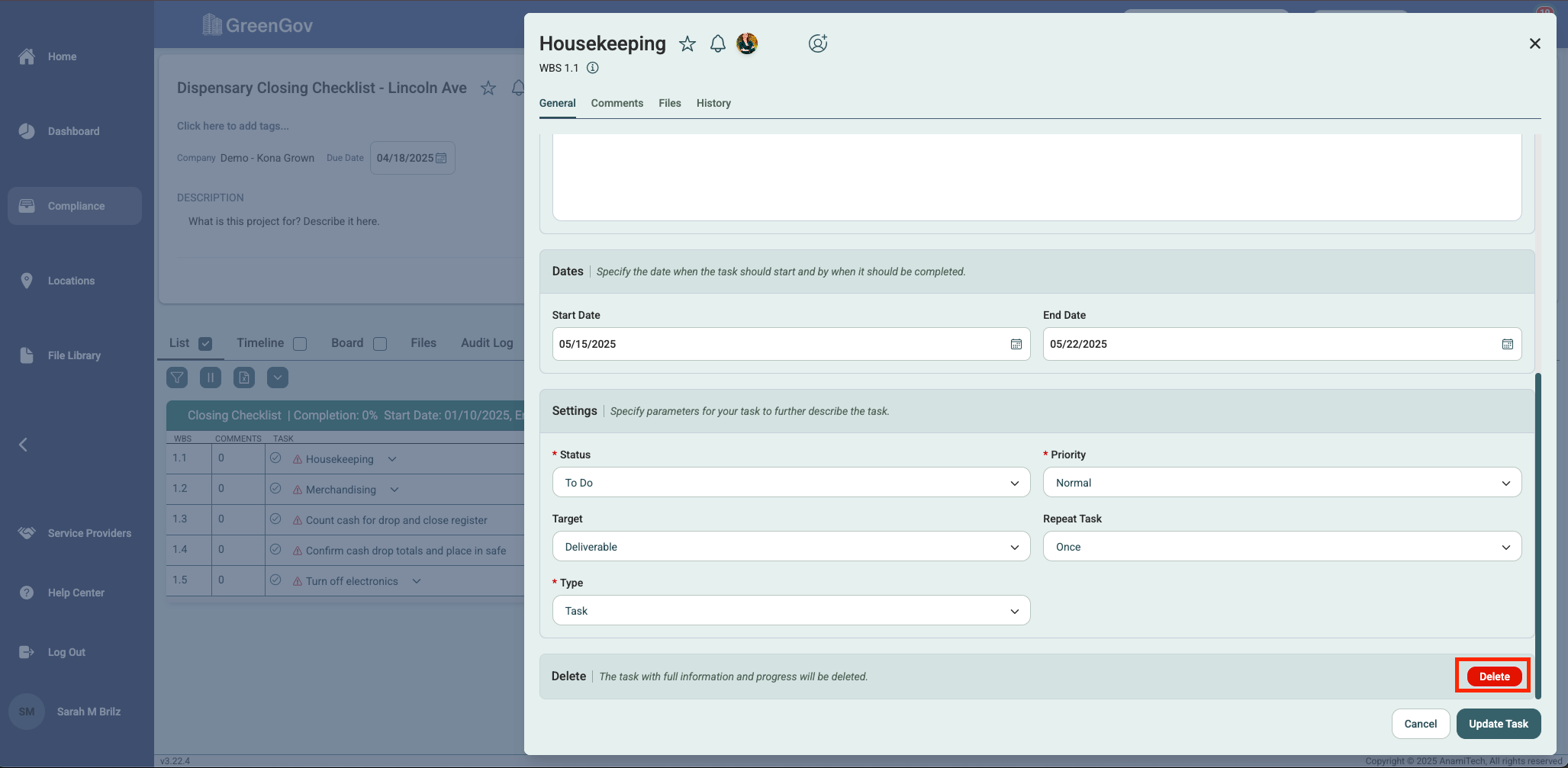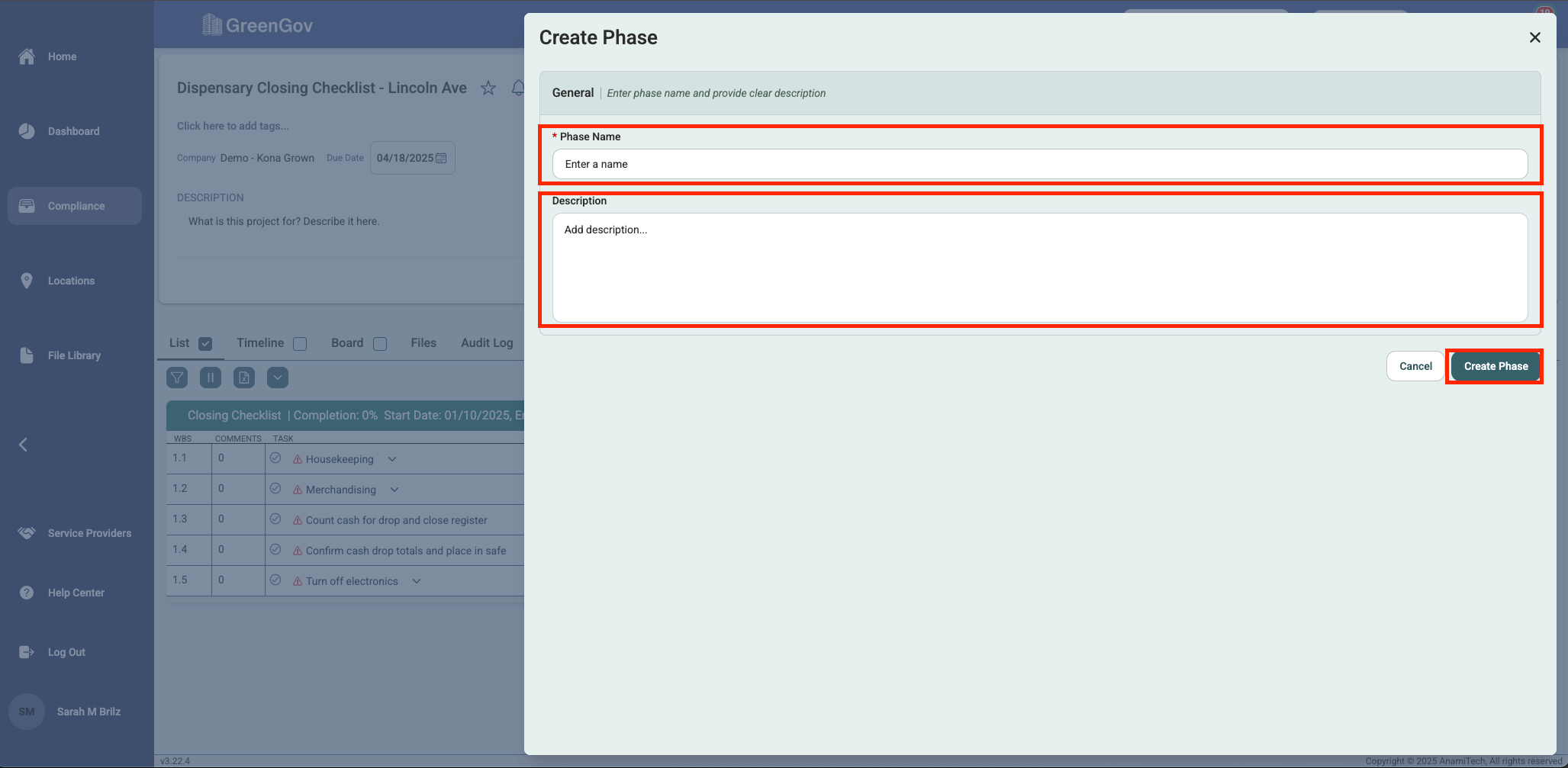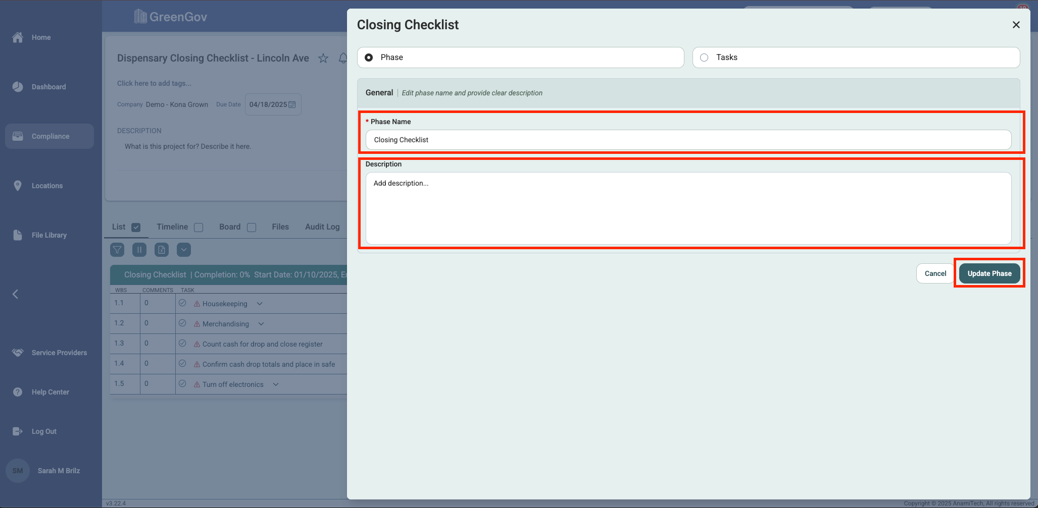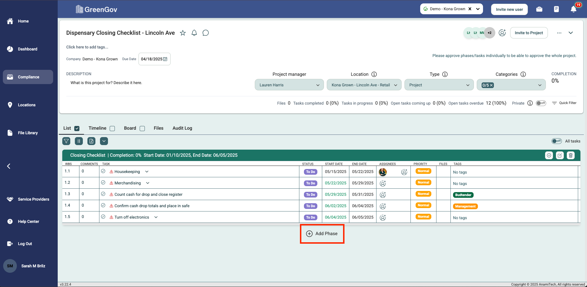 That's it! You're now equipped to add, edit, and delete phases, tasks, and sub-tasks in GreenGov. If you have any questions or need further assistance, please don't hesitate to reach out to our support team. Happy project management!