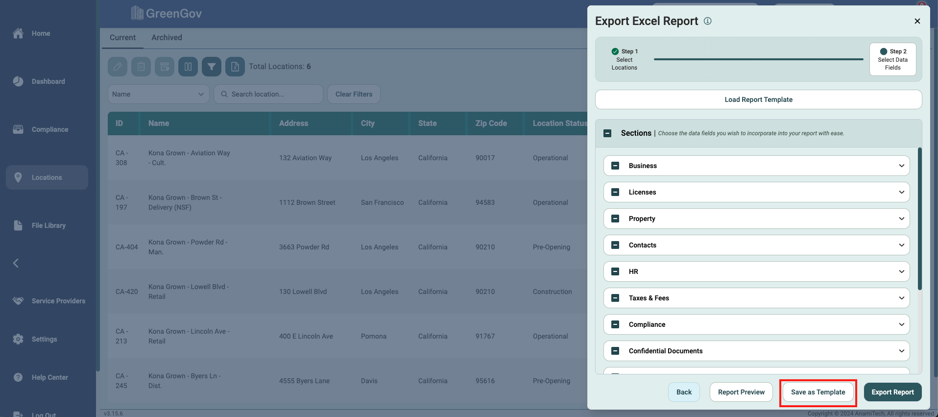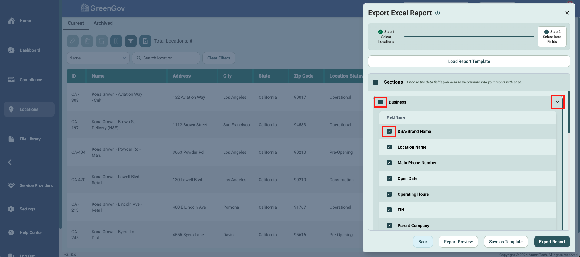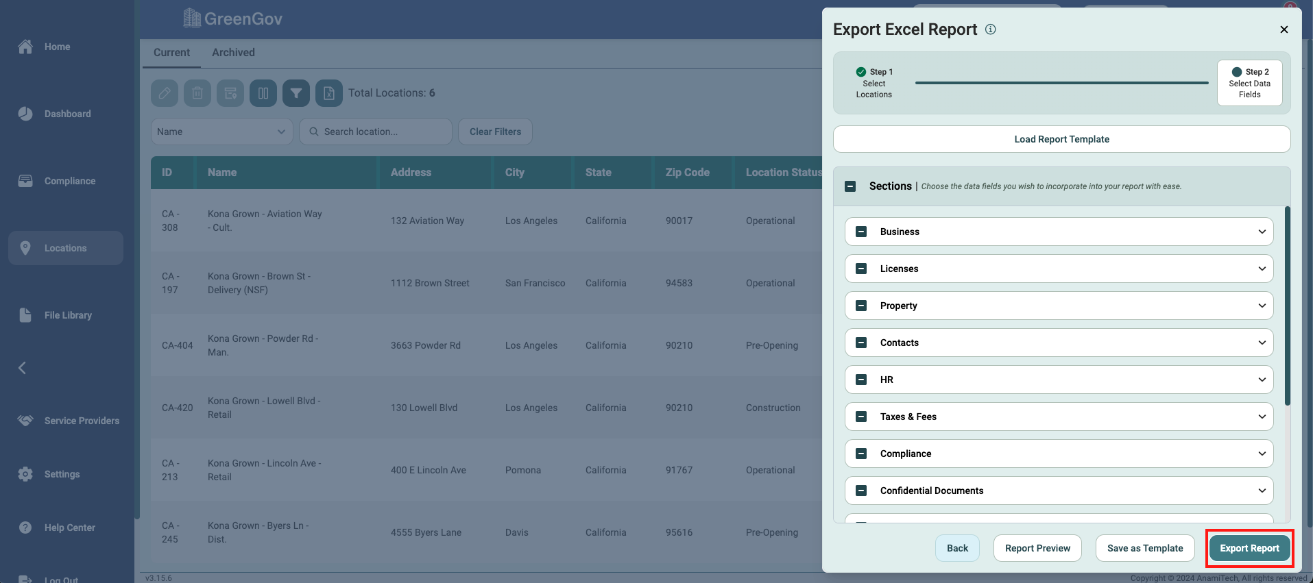Creating detailed and customized location reports for your company has never been easier with GreenGov. Follow these simple steps to generate comprehensive Excel reports tailored to your specific needs.