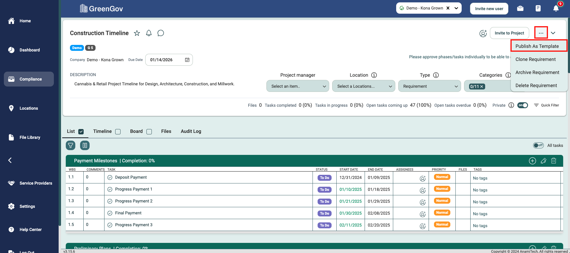 By following these steps, you can make the most of GreenGov's template feature, ensuring a seamless project management process tailored to your needs. If you encounter any issues or have further questions, don't hesitate to reach out to our support team for assistance. Happy project managing with GreenGov!