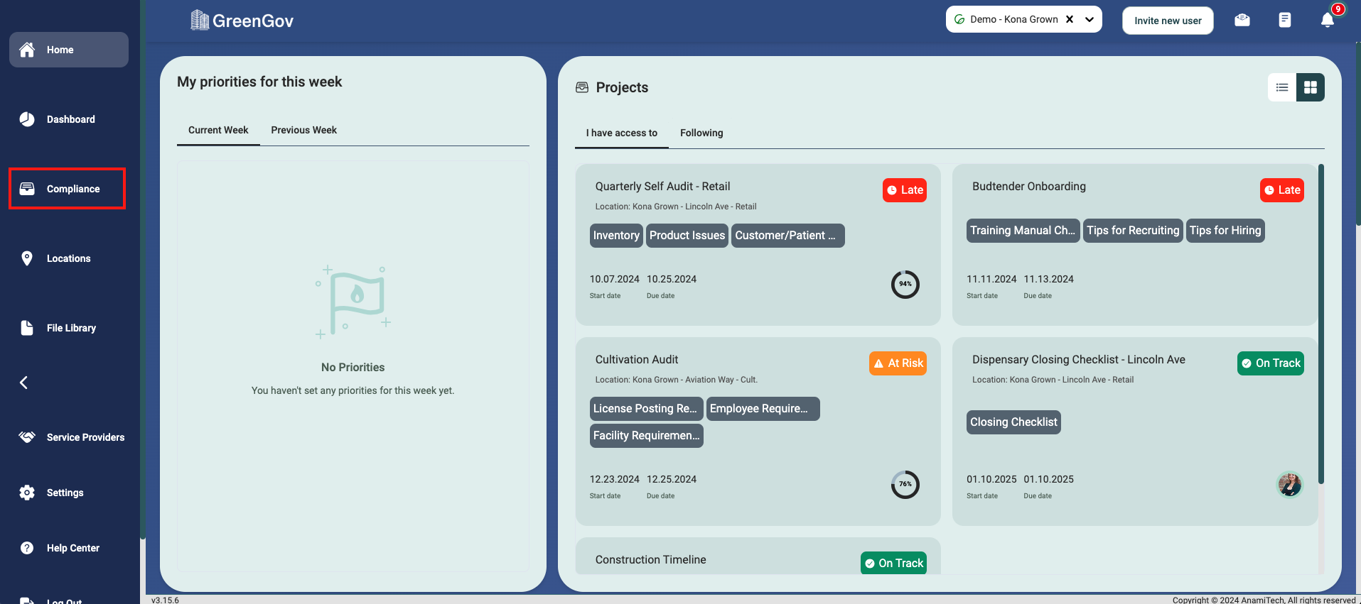 Navigate to the Compliance in the main menu on the left side of your screen.