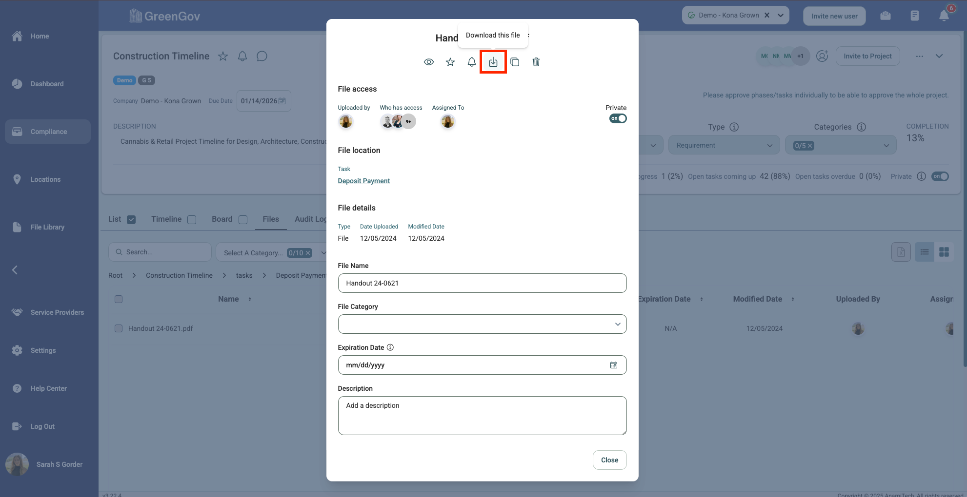 And that's it! You've successfully downloaded a file using GreenGov. With this simple process, you can quickly access and save your important documents. If you have any questions or need further assistance, please don't hesitate to reach out to our support team. Happy file management!