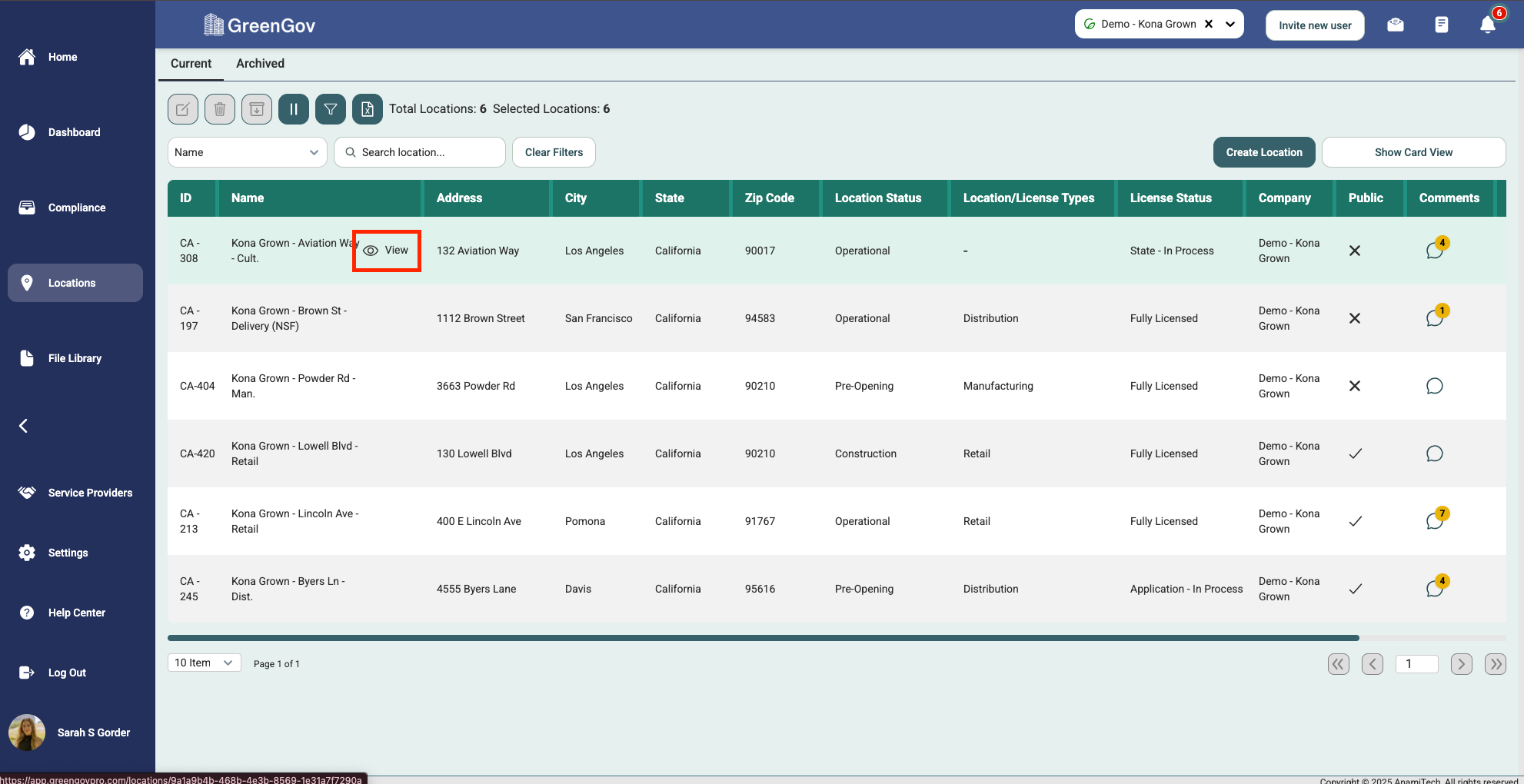 Click on the "Locations" option located in the main menu to the left of your screen.