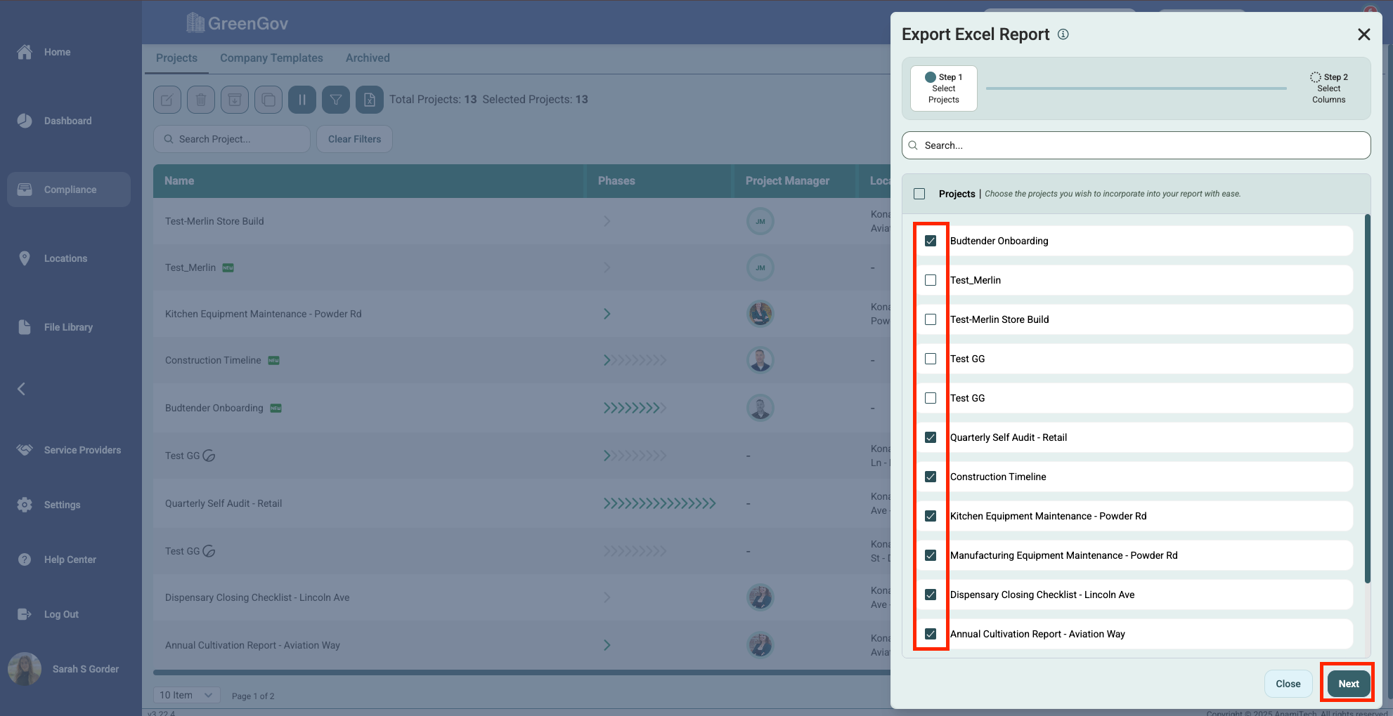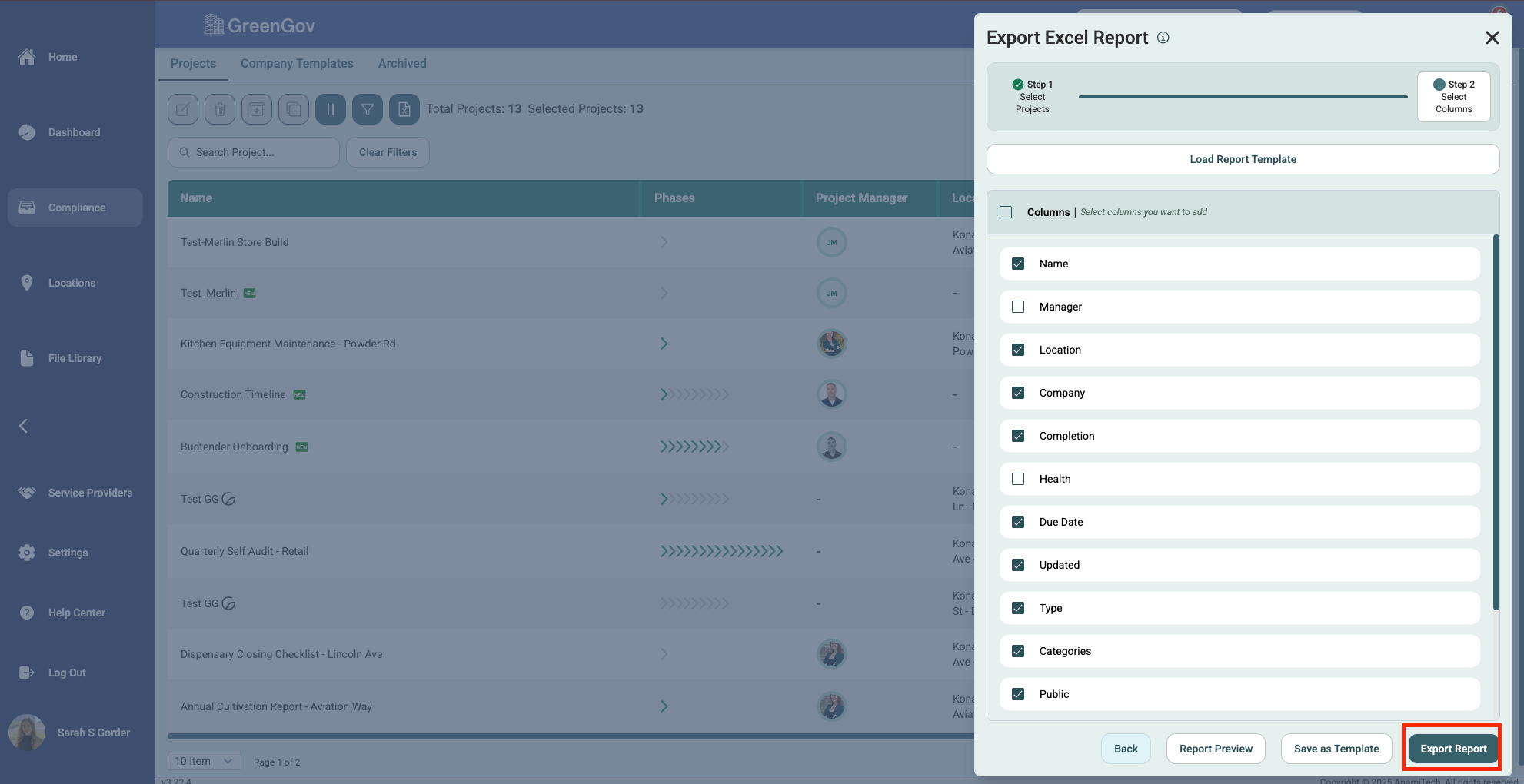 Export Compliance Overview to an Excel File