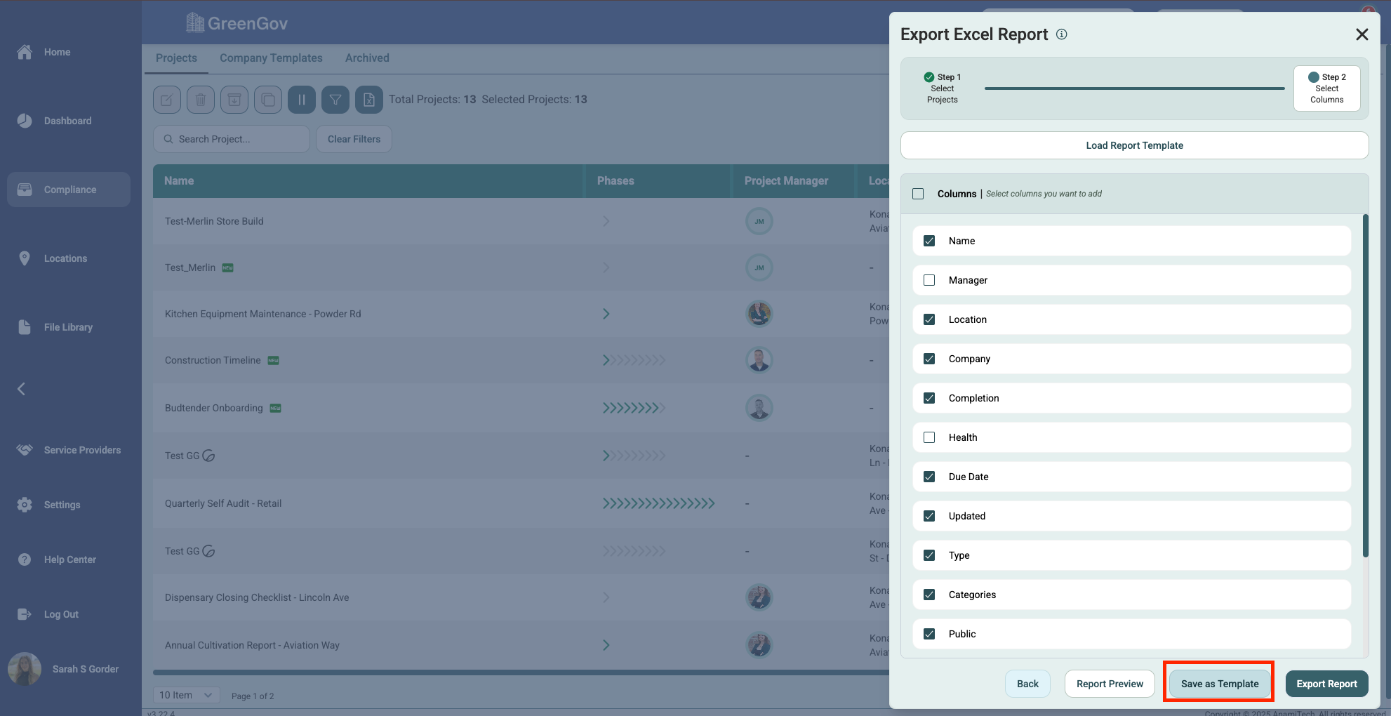 You can save report templates for easy reuse in the future. After you have selected the proper columns, click "Save as Template".