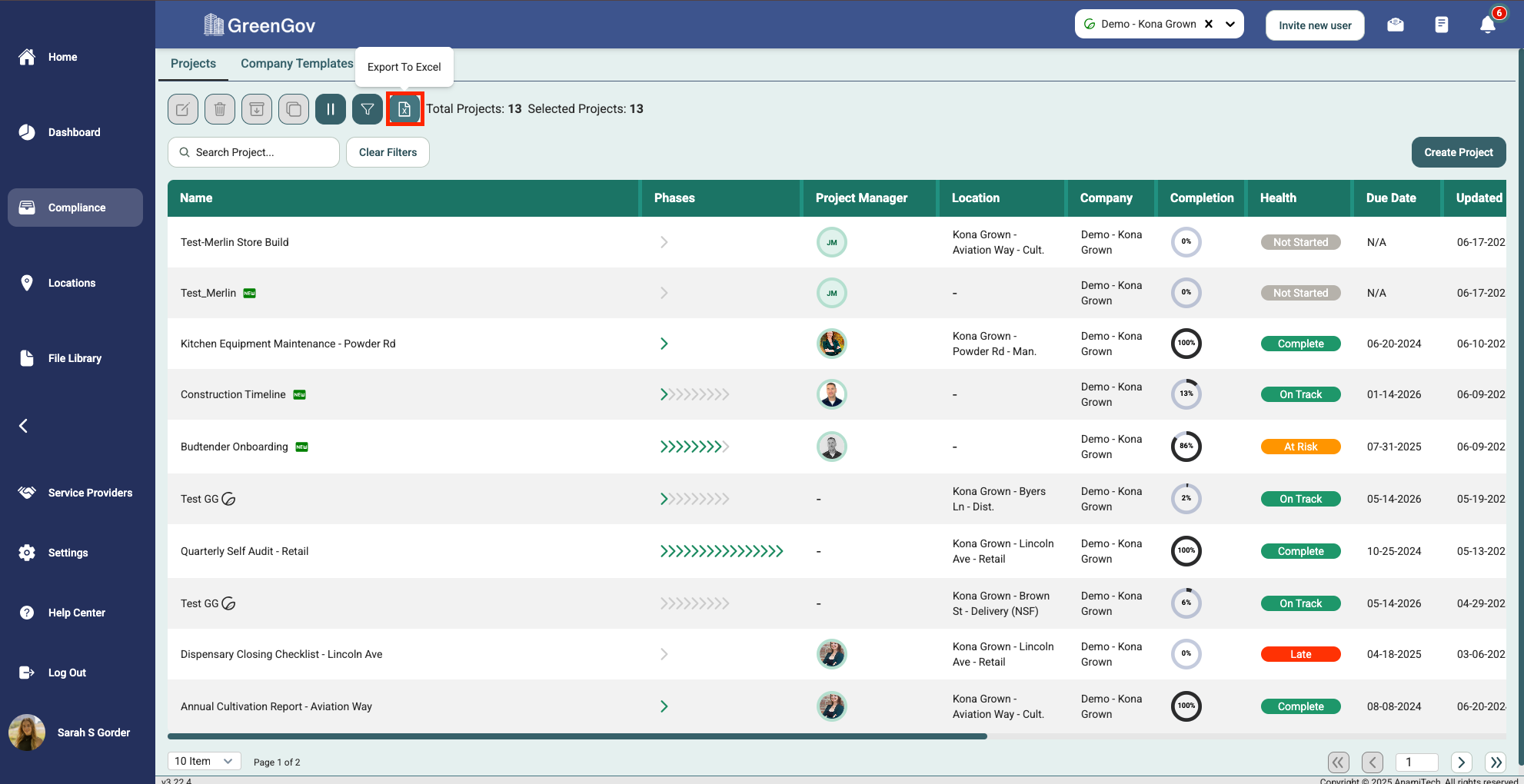 Congratulations! You've successfully exported your project overview in GreenGov to an Excel file. Should you encounter any issues or need further assistance, our support team is here to help.