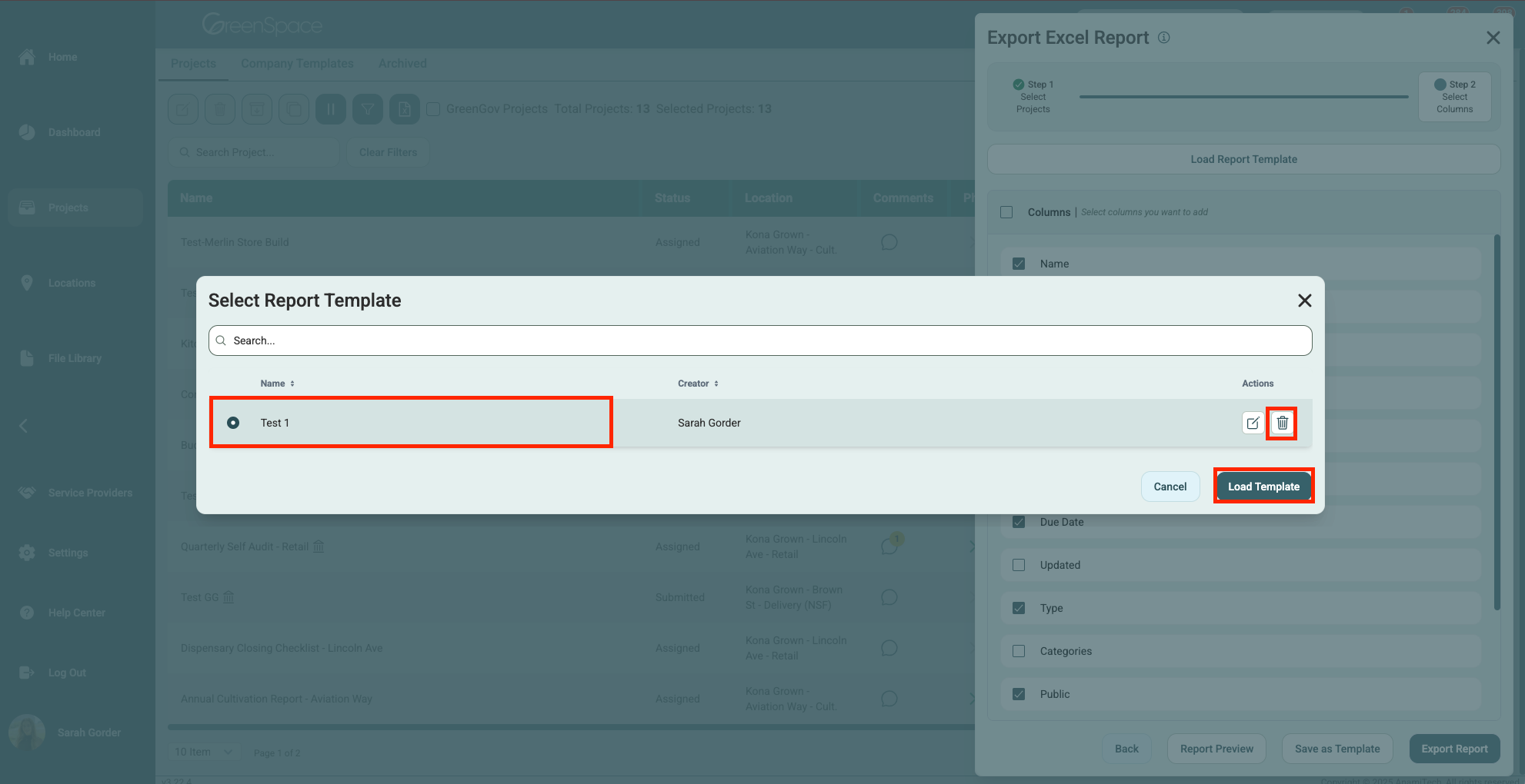 Click the template you would like to load. You can also utilize the search bar at the top. You can also take this opportunity to delete any templates you no longer need. Click "Load Template".