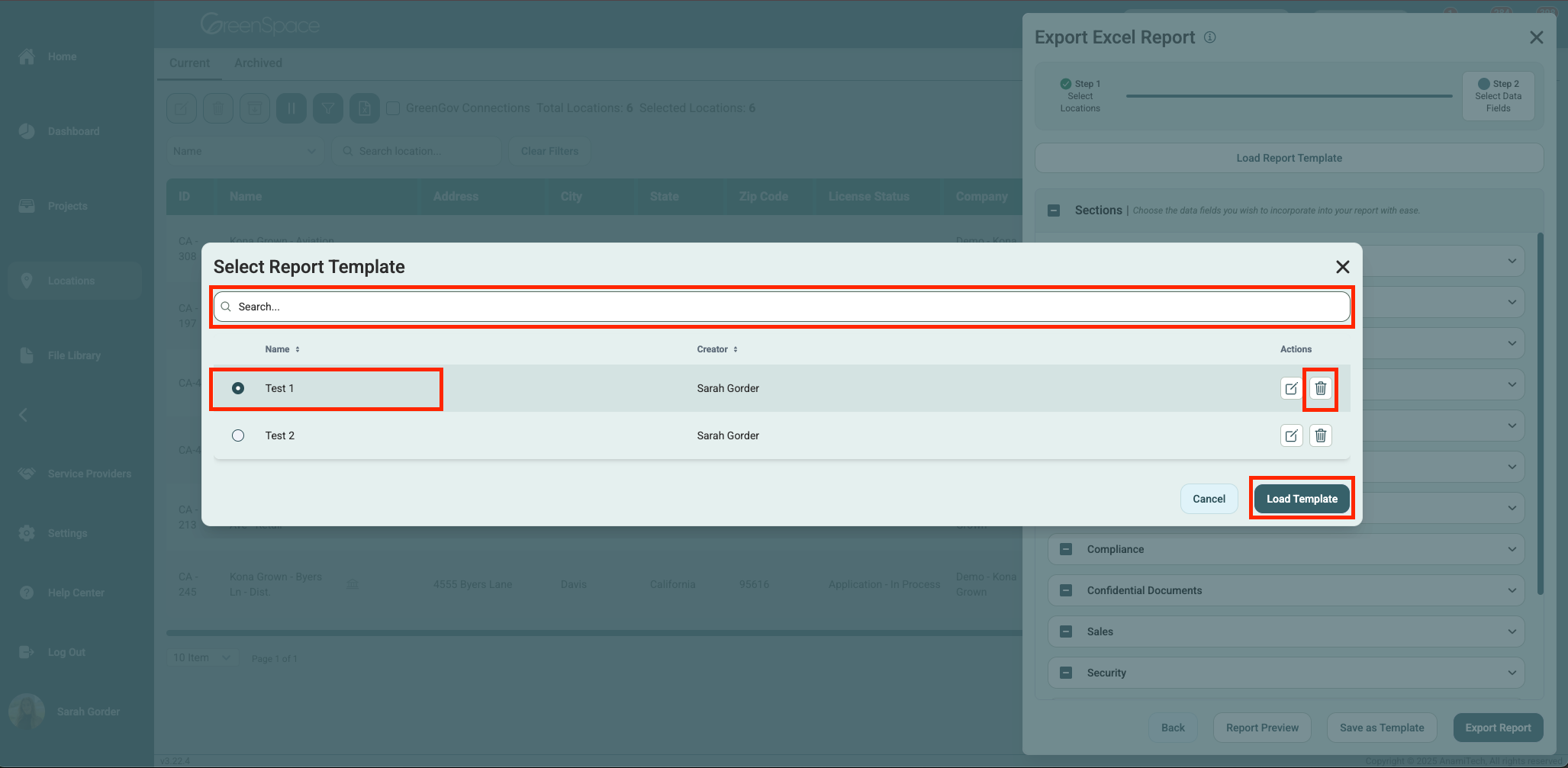 Click the template you would like to load. You can also utilize the search bar at the top. You can also take this opportunity to delete any templates you no longer need. Click "Load Template".