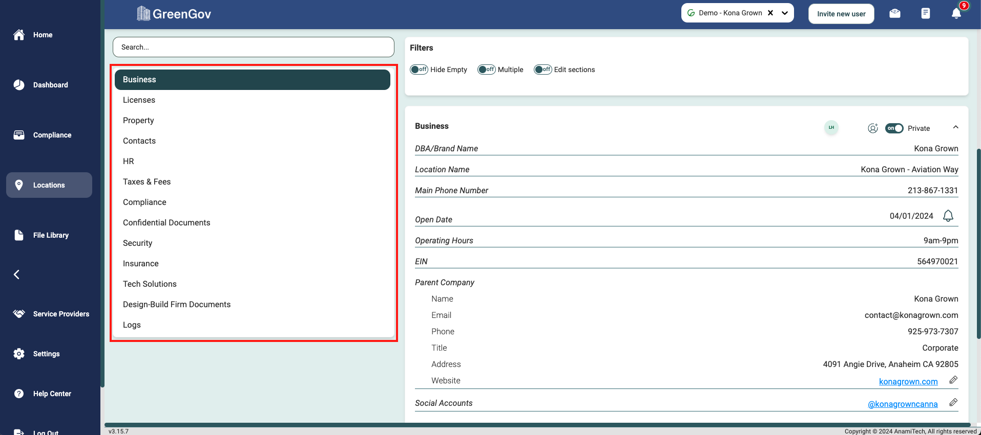 Click on the "Locations" option located in the main menu to the left of your screen.