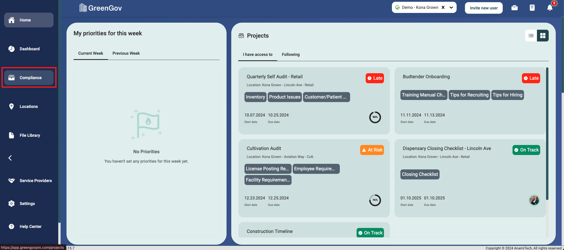 Click on the "Compliance" option located in the main menu to the left of your screen.