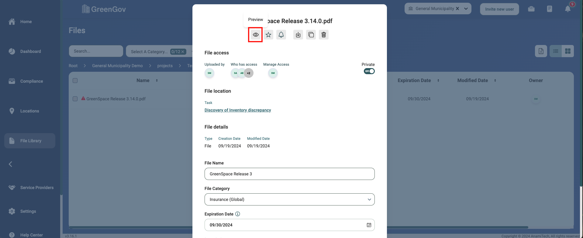Previewing files is an essential feature that allows for quick access to file details and options. Here's a step-by-step guide on how to preview files within GreenGov.