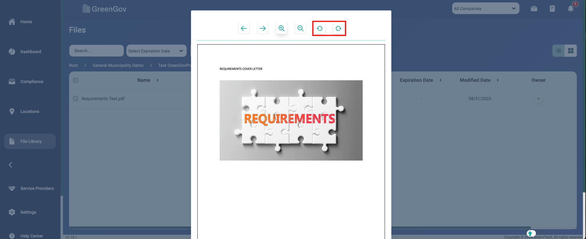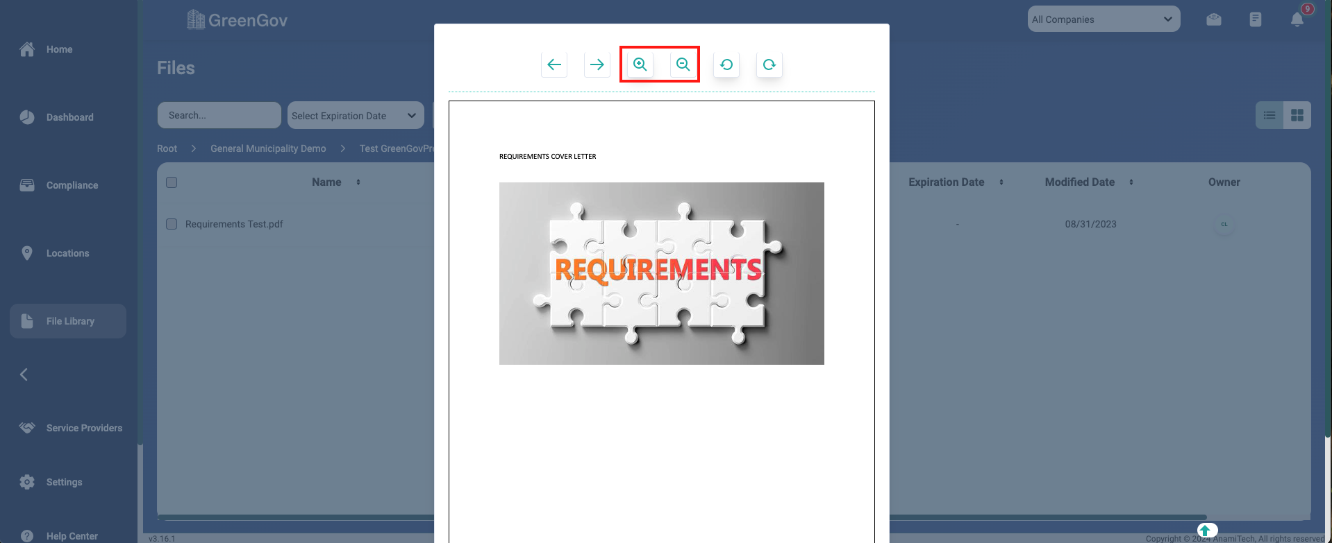 And that's it! You've successfully previewed a file using GreenGov. With this simple process, you can quickly save your important documents to the associated tasks, projects, and locations. If you have any questions or need further assistance, please don't hesitate to reach out to our support team. Happy file management!