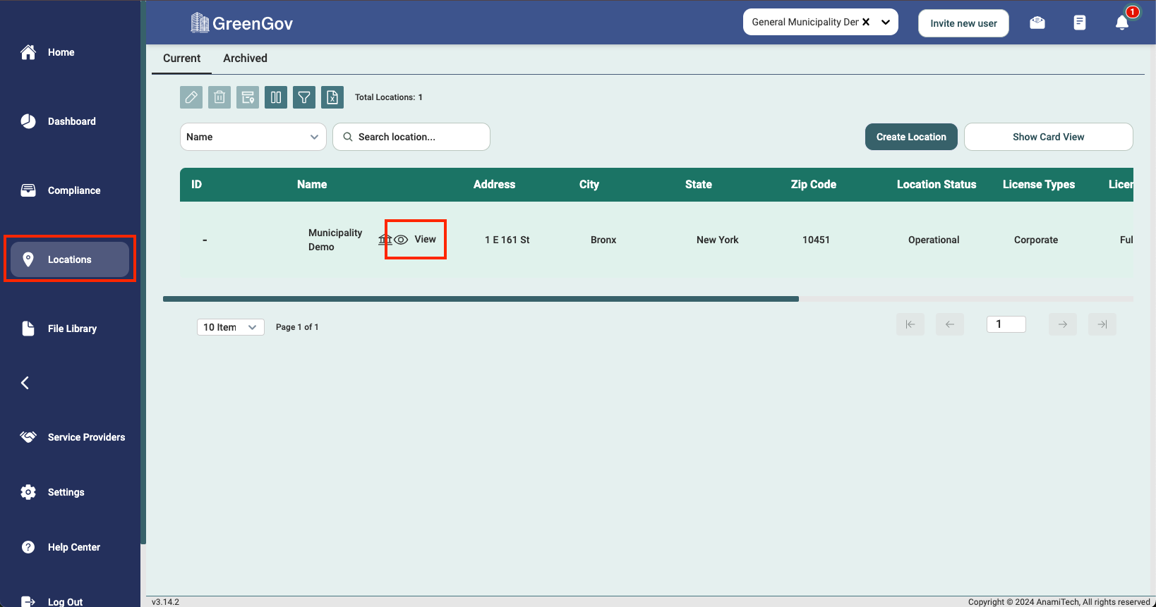 Select Locations from the main menu. Then hover over the location you would like to access the file within and click the eye icon to view.
