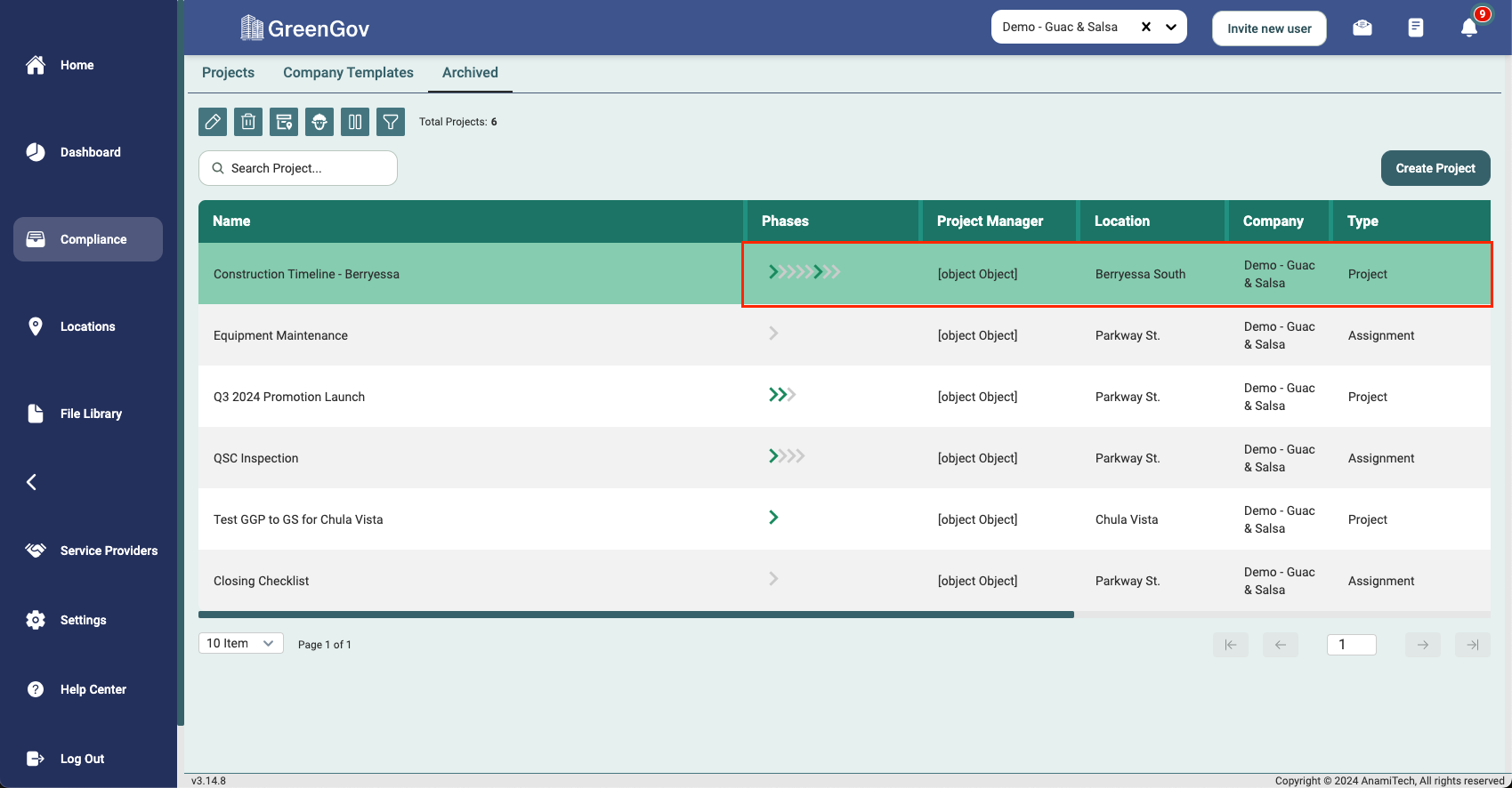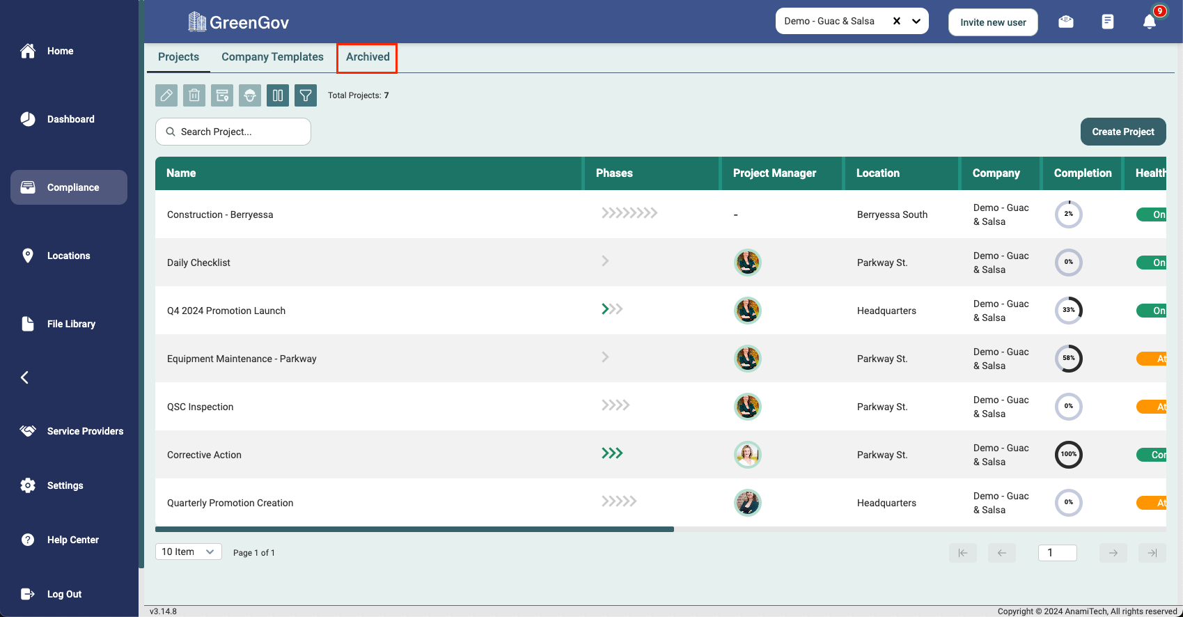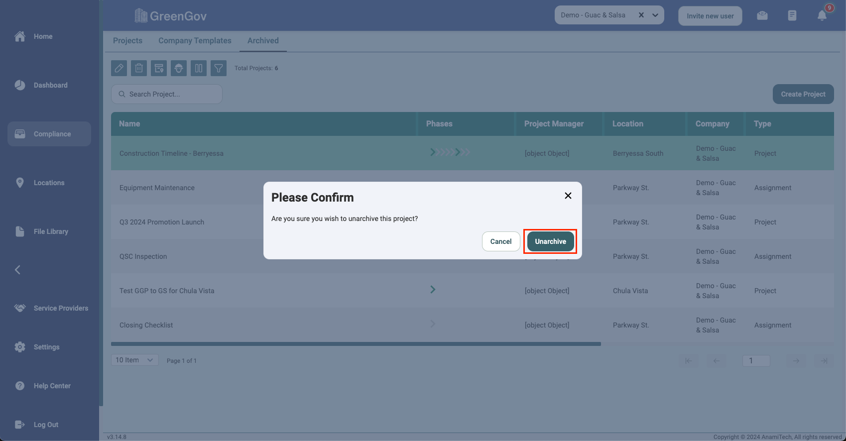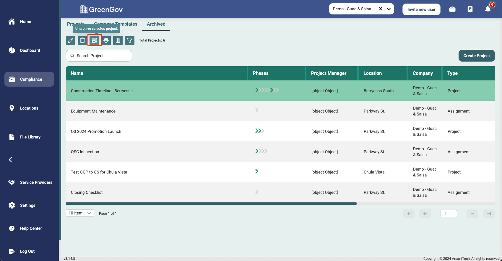 That's it! You've successfully unarchived a project within your company using GreenGov. With this information at your fingertips, you can now efficiently manage your business and stay organized. If you have any questions or need further assistance, our support team is ready to help. Happy business management!