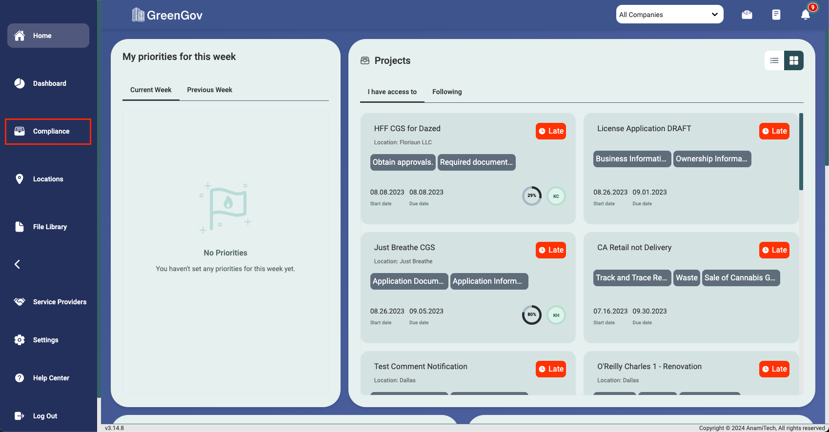 Click on "Compliance" located in the main menu on the left side of your screen.