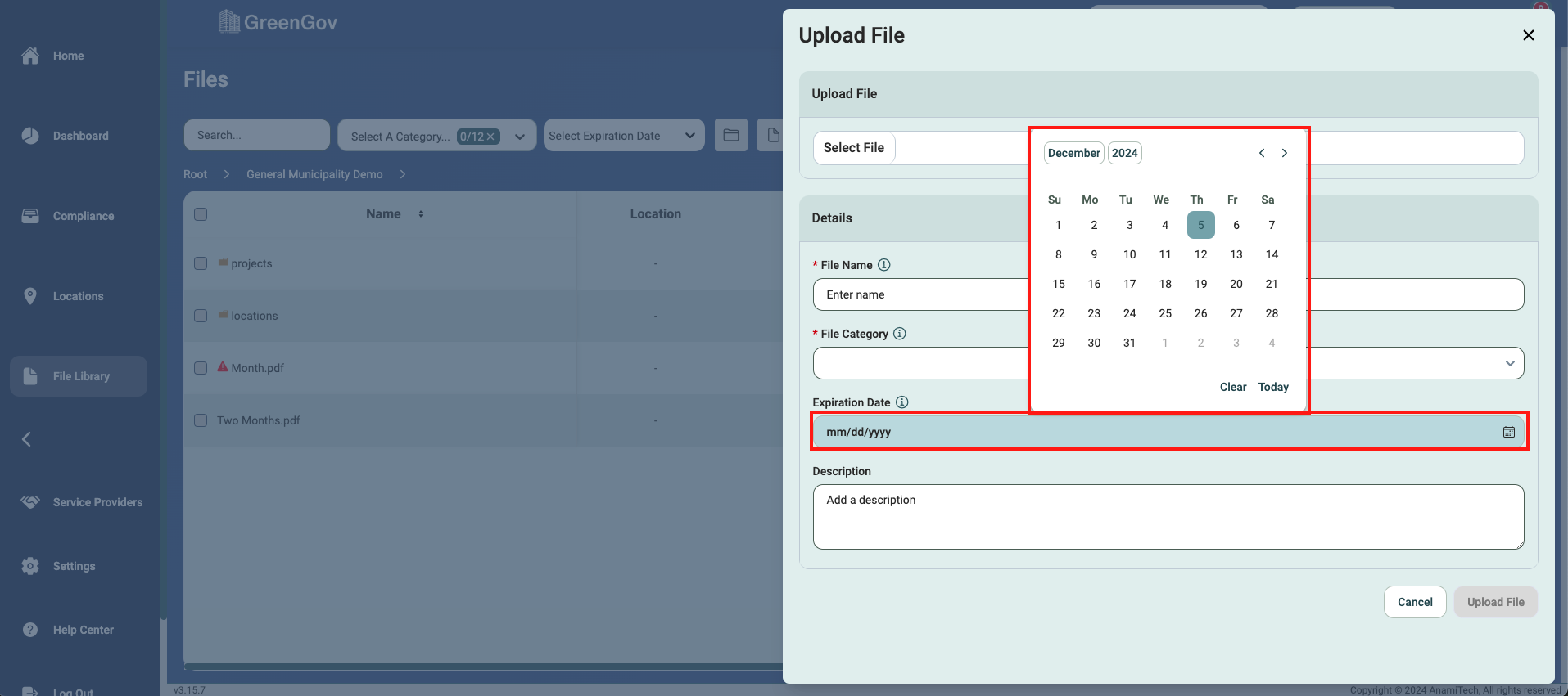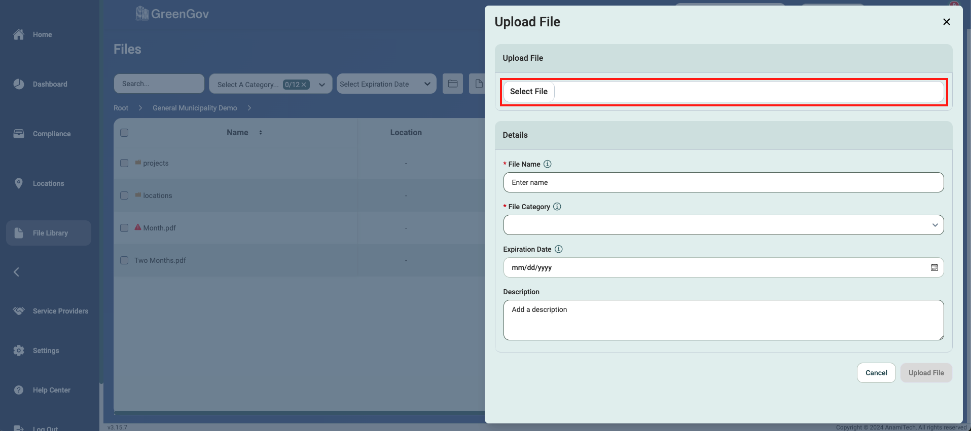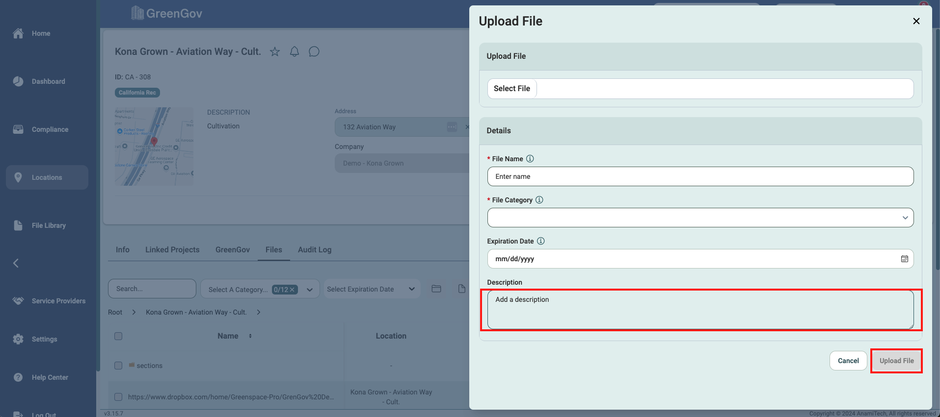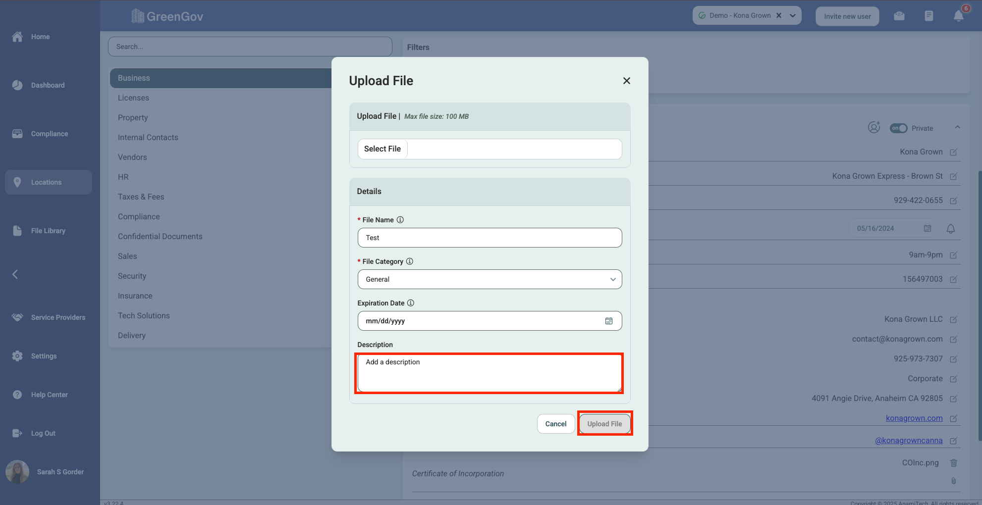 Fill out the description, if applicable, and click "Upload File" to save the file.