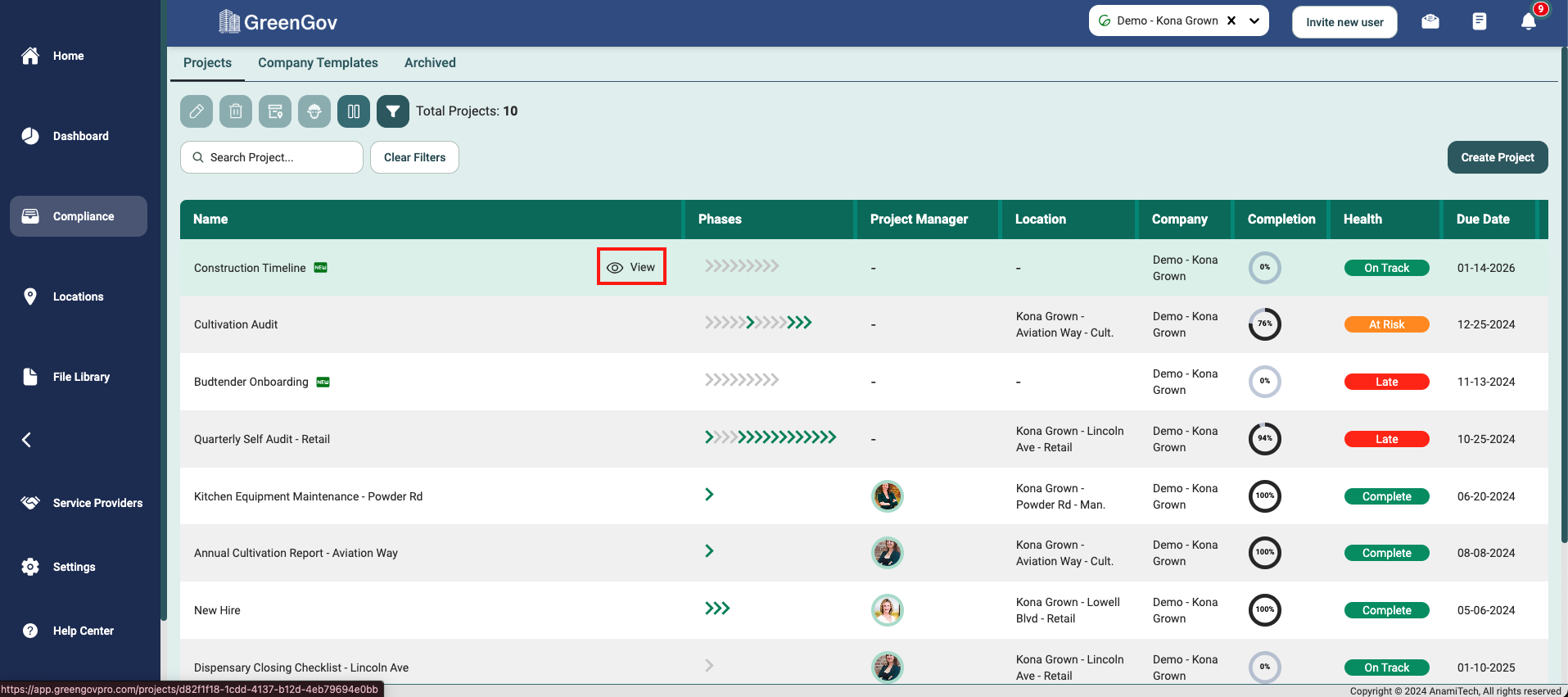 Open the project you would like to upload a file by hovering over the project and clicking on the view eye icon.