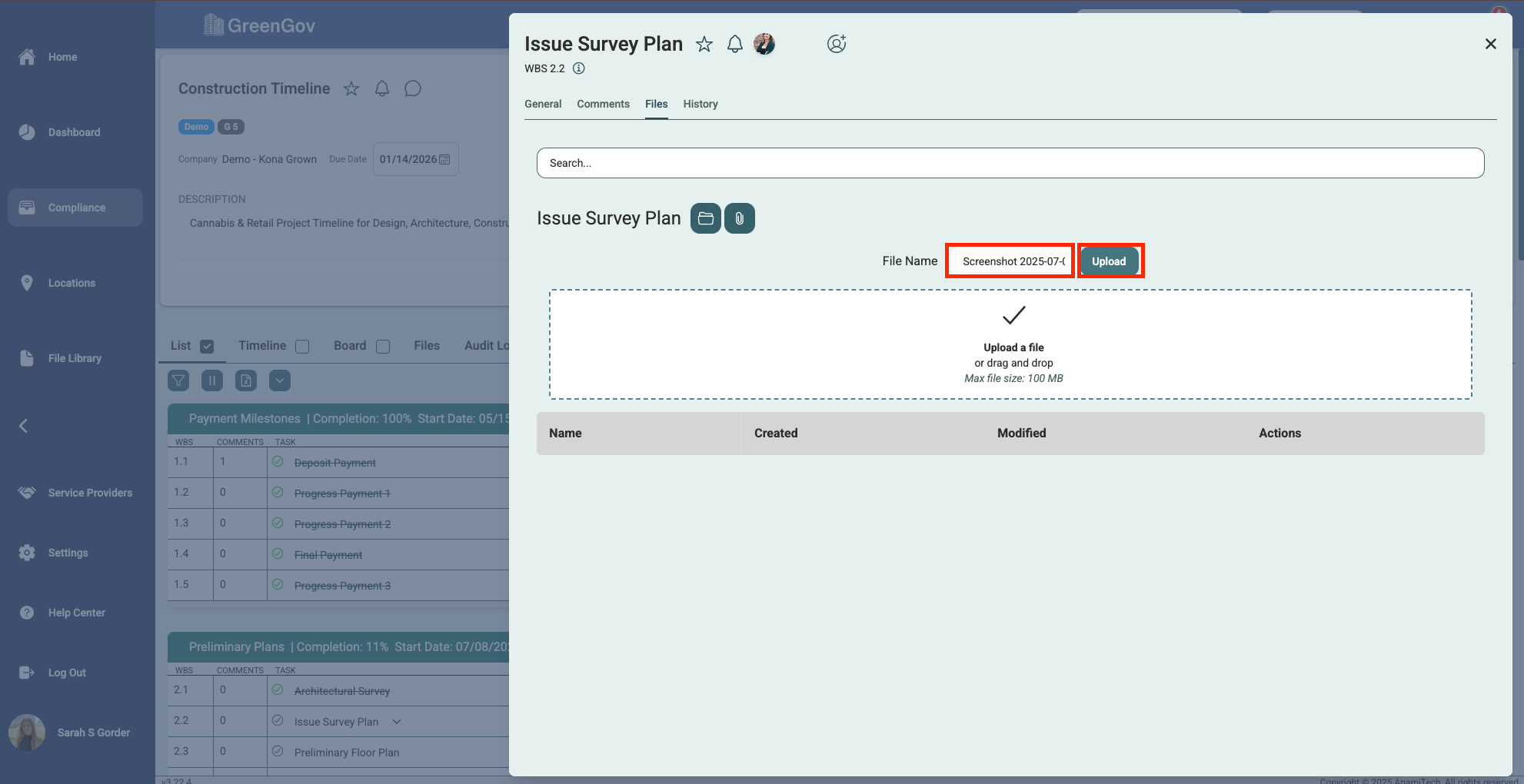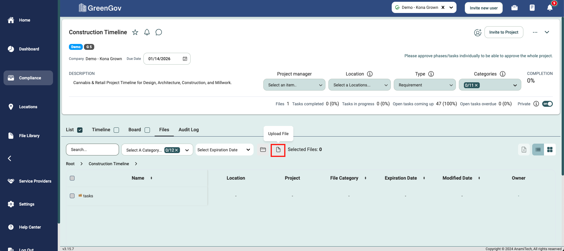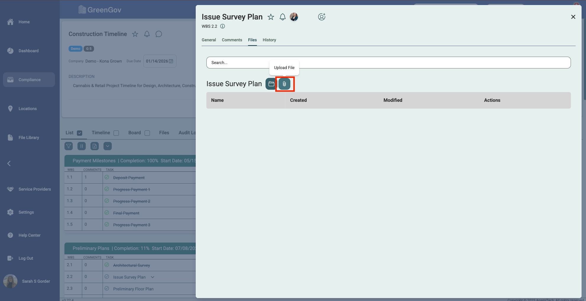 And that's it! You've successfully uploaded a file using GreenGov. With this simple process, you can quickly save your important documents to the associated tasks, projects, and locations. If you have any questions or need further assistance, please don't hesitate to reach out to our support team. Happy file management!