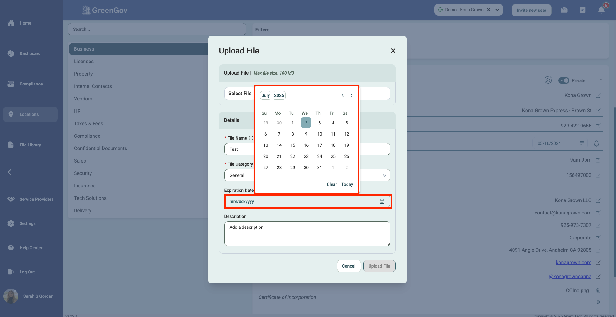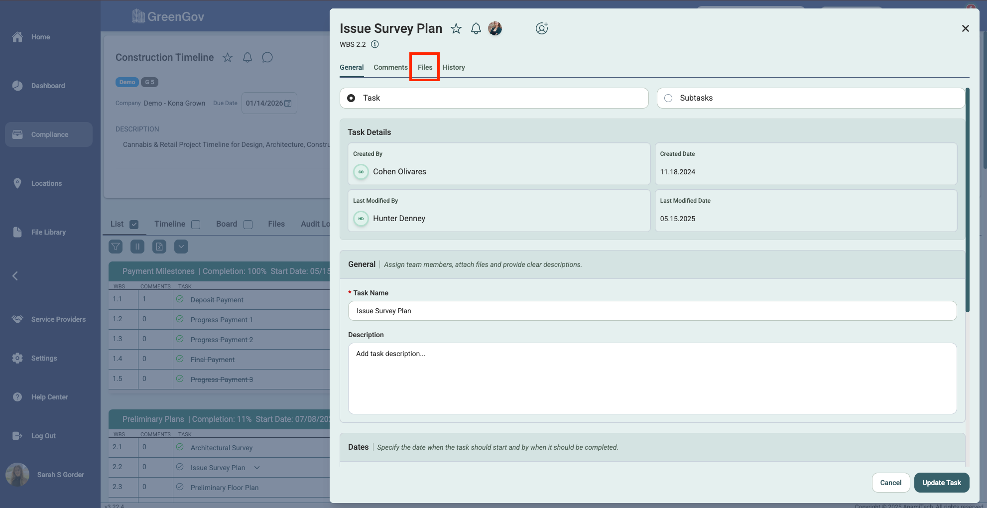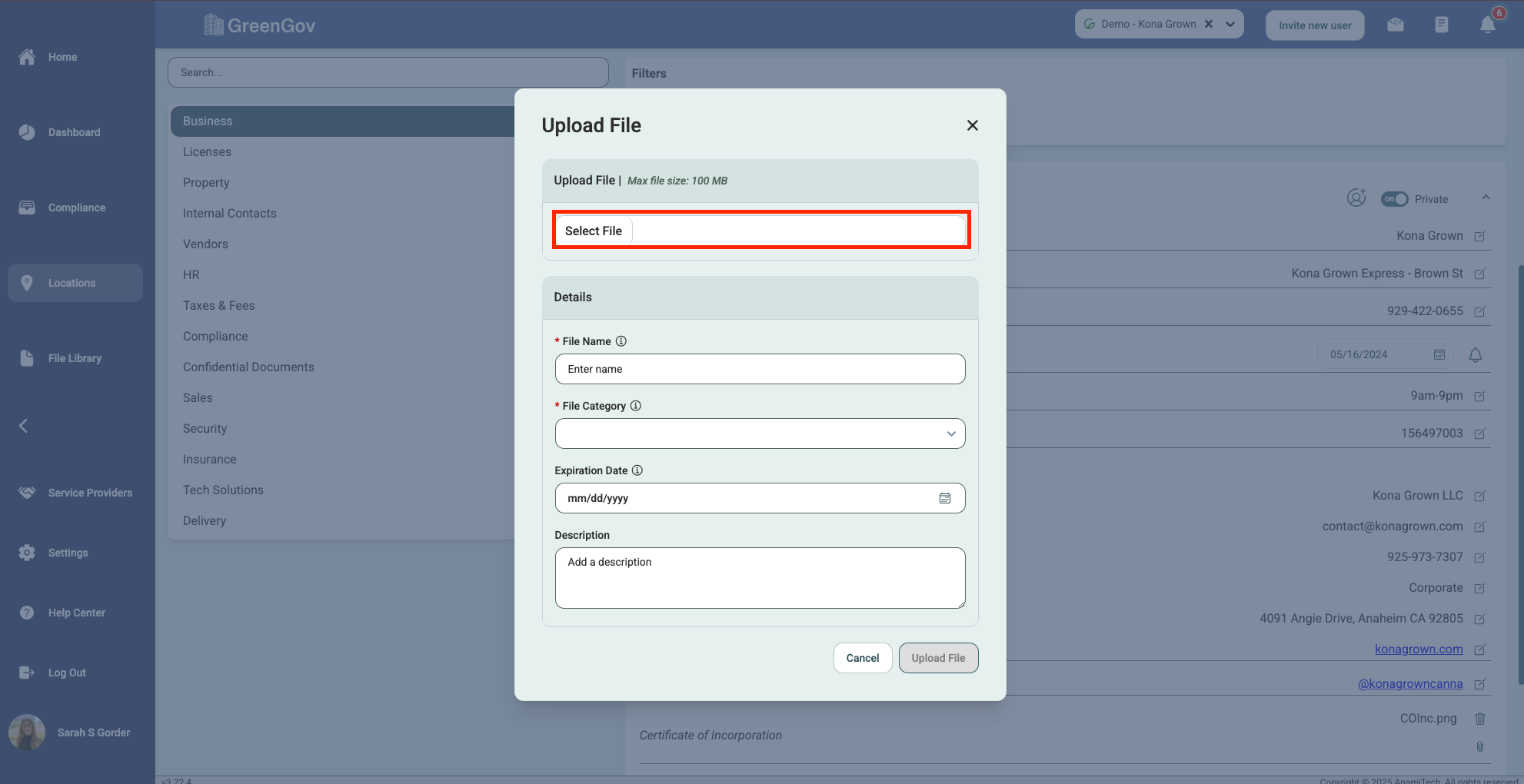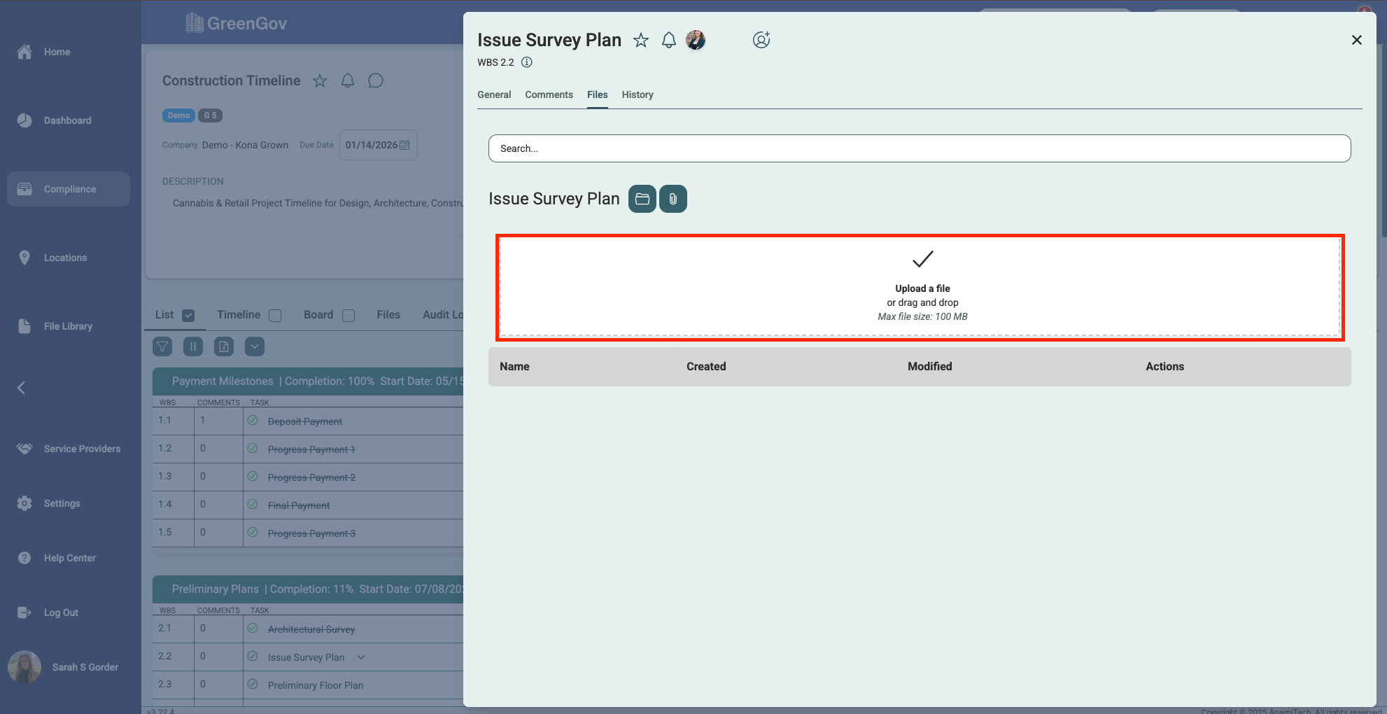 And that's it! You've successfully uploaded a file using GreenGov. With this simple process, you can quickly save your important documents to the associated tasks, projects, and locations. If you have any questions or need further assistance, please don't hesitate to reach out to our support team. Happy file management!