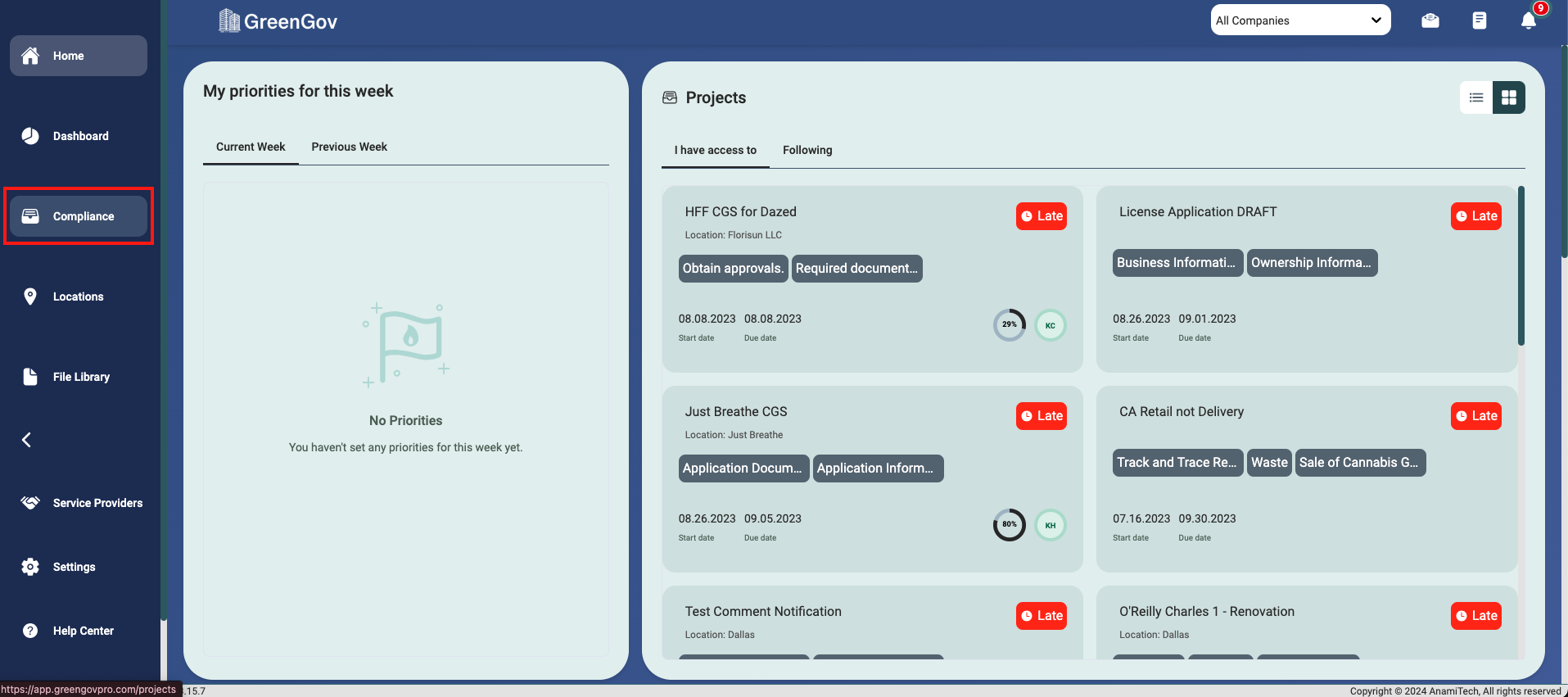 Click on the "Compliance" option located in the main menu to the left of your screen.
