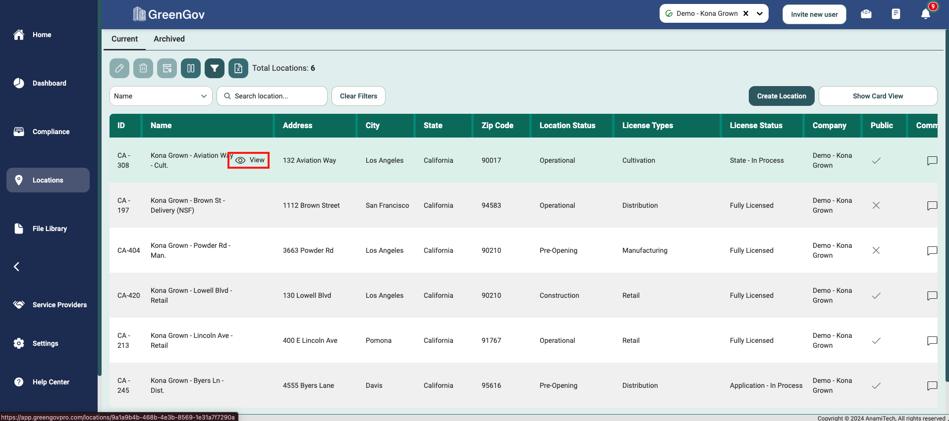 Click Locations from the main menu on the left side of your screen.